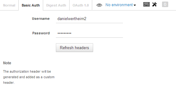 Since we have secured our database, I somehow need to pass the credentials. Here, I have chosen to do it using Basic http authentication (read more).