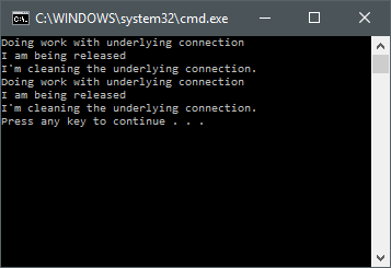 Console.WriteLine("I'm cleaning the underlying connection.");